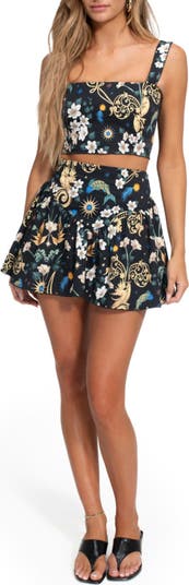 Breeze through pool parties and sunny days in this all-cotton miniskirt featuring a pointed flounce in the front and a smocked waistband in the back.