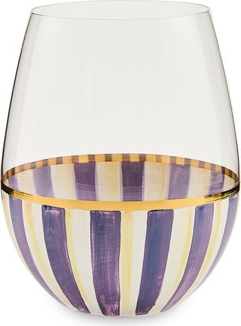 MACKENZIE CHILDS Violet Stripe Stemless Wine Glass, Main, color, Violet