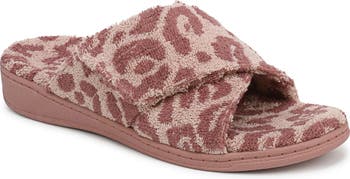 A cushy footbed provides endless support in a plush, leopard-spotted slide sandal with adjustable straps and a textured outsole. The brand's VIO MOTION™ cushioning provides both flexibility and stability with every step.