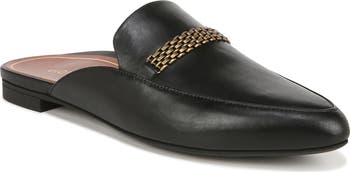 Antique hardware enriches the vamp of a rich leather mule fashioned with a loafer-inspired topline and mini block heel for contemporary appeal.