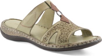 Laser-cut flowers make a sweet statement on this caged T-strap sandal grounded by a comfort cushioned footbed and a low wedge heel.