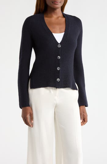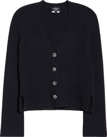 Indulge in the comfort of this supersoft cardigan knit from warm wool-cashmere blend yarns in a slouchy, easy-to-layer fit.