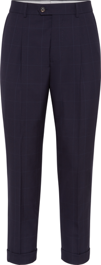 The lightweight Super 120s pure virgin wool fabric showcases an oversized version of the characteristic tailored pattern.