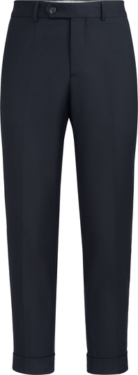 - Zip closure with double button and backing buttonSlanted front pocketsBack welt pockets with button18.5 cm (7,28\") hemFormal fit: the fit is characterized by regular proportions in the seat and straight lines down the leg