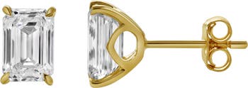 Brilliant 2.04 carat Emerald shaped lab grown diamond solitaire earrings showcased in an amazing 3 prong basket setting. Crafted in 14K gold with a premium push back post which combines timeless elegance with comfortable wear.