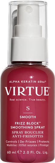 What it does: Created for harsh humid conditions, this alcohol-free, heat-activated spray is the prescription-strength equivalent of traditional antifrizz sprays. Virtue's proprietary Alpha Keratin 60ku® instantly fills and seals cracked cuticles while featherweight polymers and lipids hover above, repelling airborne humidity. This lightweight, milky mist is alcohol-free, so it won't create buildup or dry out hair and it's heat protective up to 450 degrees, leaving hair healthy, silky-soft and free of frizz for days. The scent features a restorative blend of herbs, fruits and citrus, incorporating soothing lavender and fresh mint essential oils.