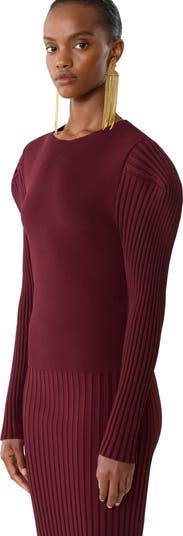 The lines of this sweater create a resolutely modern and feminine look. The knit fabric, achieved using a blend of viscose and Lycra through two techniques, creates a sculptural silhouette. The removable bib allows you to personalize the piece to suit different styles. It goes perfectly with the matching pencil skirt for a strong yet sophisticated daytime outfit.