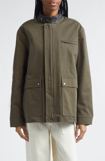 Inspired by traditional field jackets, this relaxed-fit version is fitted with a secure zip chest pocket and oversized flap pockets to store any finds, while the band collar is trimmed with supple leather for a rustic feel.