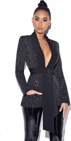 With hand placed crystals and satin lapels the Visionary blazer is truly stunning! Made of stretch crepe, this design has a hidden workable button and built in pockets. Wear with a solid trousers and let the blazer do all the talking.