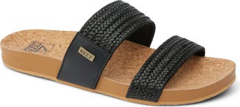 Braided straps texture an easy-on sandal outfitted with arch support and a cushioned footbed for a well-adjusted balance of comfort and support