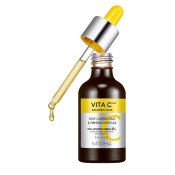 Vita C Plus Spot Correcting & Firming Ampoule is formulated with 33% Vita C Liposome Formula that encapsulates 99% pure Vitamin C and collagen in a microcapsule. This quickly delivers transformative skincare ingredients into skin for a brighter and firmer-looking complexion. This 2-in-1 wrinkle repair and brightening serum is great for dark spots, discoloration, rough texture, and sagging skin. Vita C Spot Correcting & Firming Ampoule is clinically proven to target seven different signs of aging: sun damage, aging spots, uneven skin tone, loss of elasticity, decreased intercellular lipids, rough texture, and loss of vitality. Recommended for: aging or dull skin, dark spots. pH of 6.2. Formulated without artificial fragrances and colors, parabens, sulfates, animal products, alcohol, or mineral oils. Size: 1.01 fl.oz