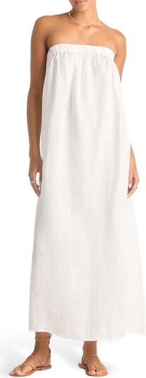 Enjoy hands-free convenience with this linen cover-up dress, featuring practical on-seam pockets. Held up by a wide elastic band, it ensures a confident and comfortable fit, perfect for any sunny day.