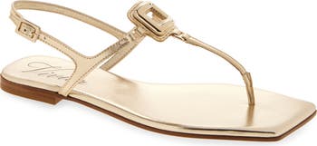 A signature since the '60s, Vivier's iconic square buckle is reimagined in a miniature rendition atop this minimalist Italian-crafted sandal fashioned from high-shine metallic leather.