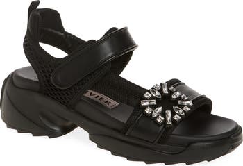 An iconic crystal buckle gives the Vivier touch to the décontracté look of this sporty sandal featuring a serrated rubber sole and a signature curved silhouette.