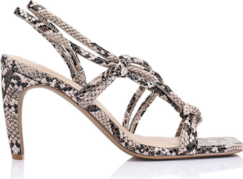 Introducing Viv, the ultimate statement in effortless elegance. Crafted from beige snake-print leather, this square-toe slingback sandal features knotted leather details, dual bands, and a gracefully curved heel that’s both striking and comfortable. Designed to elevate any ensemble, it adds a subtle yet sophisticated edge to your wardrobe.