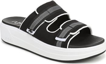 This platform slide sandal is designed with the brand's Q Angle, built for a woman's quadricept muscle and made with a narrower heel and roomier toe.