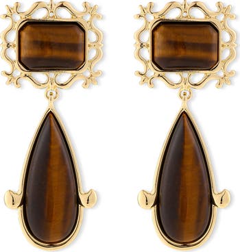 Pretty cabochon stones sit perfectly with the settings of rectangular posts and slender drops on polished earrings designed to bring a splash of color to your stack.