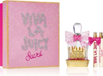 What it is: A limited-edition gift set featuring Juicy Couture's fragrance of fresh indulgence for the enticingly delightful viva girl, Viva La Juicy Sucré. The set also includes a pen spray of the original Viva La Juicy fragrance.