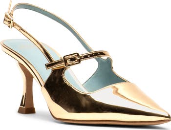 A slingback strap and pointy toe elevate the profile of this outfit-making pump.