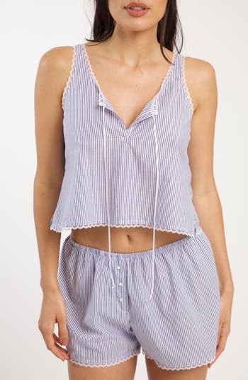 With flirty ties at the split neck and a cropped length, this cotton tank makes the perfect option for lounging or running around town.
