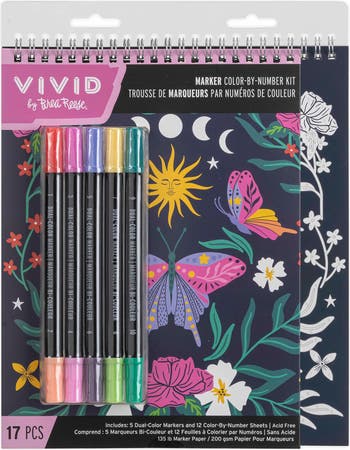 Vivid by Brea Reese Marker Color By Number Kit, Whimsical Botanicals, 5 Markers