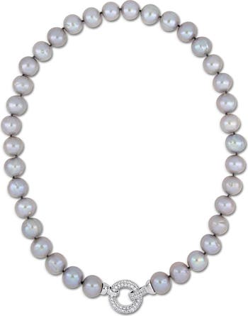 This bold grey colored cultured freshwater pearl strand features a classic strand design with a stunning cubic zirconia studded hoop clasp. A modern take on the classic strand design, this lovely piece is sure to make a valuable and versatile addition to any jewelry collection. Instantly add a touch of elegance and sophistication to any ensemble with this pearl necklace.