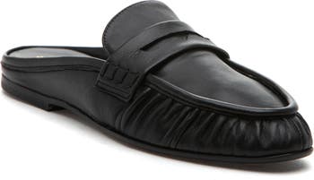 A keeper strap and ruched, apron toe deliver heritage style to this loafer-mule hybrid crafted in Italy from soft Sacchetto leather.