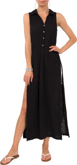 Hip-high slits make this cotton-gauze caftan ideal for lounging or anytime you want a top with some dramatic extra coverage.
