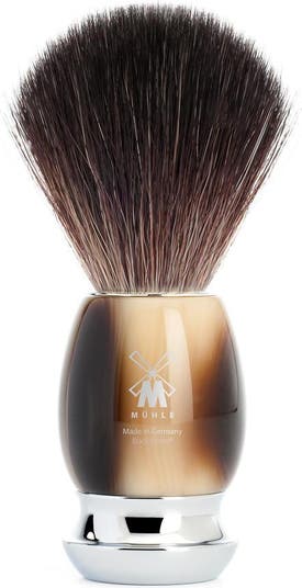 - Shaving brush with high-grade resin handle & chrome highlights