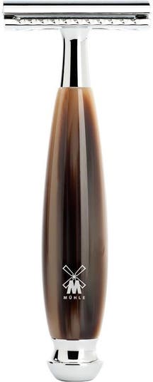 Safety razor classic blade Handles made of high-grade resin with chrome-plated metal highlights The Material - High-grade resin High-grade resin is a high-quality synthetic material, the surface of which is processed and refined separately. The material is ideal for exclusive accessories and writing implements because it facilitates a broad spectrum of modern and classical designs in many attractive colors. To begin with, the aesthetic basic shapes for brush and razor handles are turned out of solid rods. Then each individual work piece is polished in several passes to give the surface its special gleam. This processing method lends the models a pleasant feel and secures their beauty for many years to come. The Razorhead - Classic blade For generations, the safety razor has been regarded as a stylish classic which can even shave edges with precision. For many, it is the razor par excellence. Its styling is ideally suited to the design of the MÜHLE products. Even if the open blade does demand a little respect at first: After a brief familiarization period, and guided by a steady hand, it produces a very close shave and a lasting result. Unlike modern blade systems, the head of the safety razor does not move. The blades are replaced by unscrewing the cap. They can be purchased from us and by retailers everywhere. We recommend our rust-proof MÜHLE razor blades which are the perfect match for our safety razors.