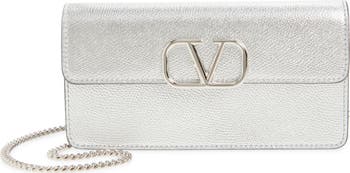 The label's signature VLOGO gleams at the snap-flap on this compact bag made from richly grained leather and made versatile with a removable chain strap.