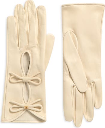 Finish off your cold-weather look with these lambskin-leather gloves featuring keyhole cutouts cinched with dainty bows.
