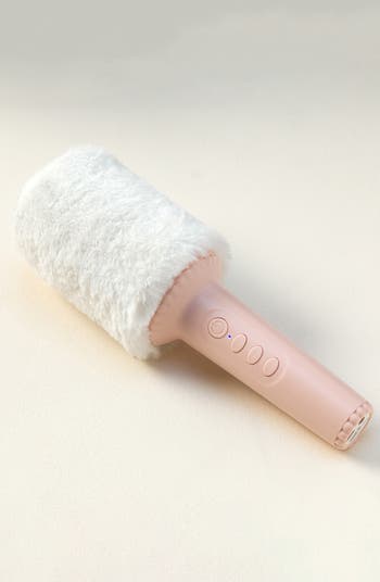 Birthdays, bachelorette parties, road trips, and even rainy days inside will never be the same when you bust out your favorite power ballad or pop song on this rechargeable wireless karaoke microphone. Connect it to a phone or tablet via Bluetooth® for up to six hours of non-stop singing, and get creative with the voice-changer—belt out your favorite 80s jam as a robot or top 40s hit as a chipmunk. The built-in speaker pumps out rich, crystal-clear audio with deep bass and crisp highs for a full karaoke experience, and the fuzzy wind muff reduces noise to catch every note and lyric. Includes wireless karaoke microphone, fuzzy wind muff cover, micro-USB charging cable, and user manual. About six hours of use per charge. Made in China.