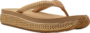 Woven straps and a cushy platform update a classic, wear-anywhere flip-flop perfect for sunny days spent at the beach or by the pool.