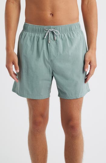 A stretchy elastic/drawstring waist keeps you comfortable all day in these swim trunks made a with a quick-drying finish.