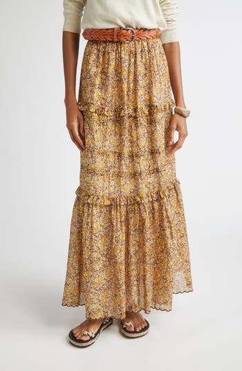 Volomia Mixed Print Tiered Cotton Maxi Skirt