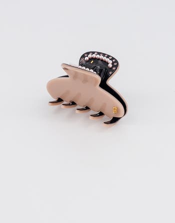 - It is thoroughly handmade in France in our workshop.It is made from acetate, a material with a natural heirloom, born from cotton flower and wooden pulp, hair friendly at heart. It is adorned with Swarovski crystals. and pearls.