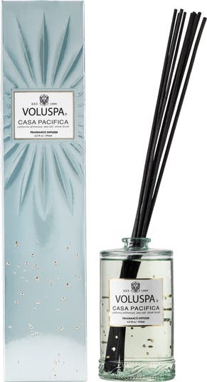 Fragrance story: Casa Pacifica is a fresh scent, blending California driftwood, sea salt and shore brush. With 18 fine-gauged rattan reeds, this diffuser is powerful without being overwhelming. The glass jar contains six ounces of sumptuously scented oil. Flip the reeds every other week for added live. The concentrated oil is produced from sustainable, ecologically sound, pesticide-free manufacturing.