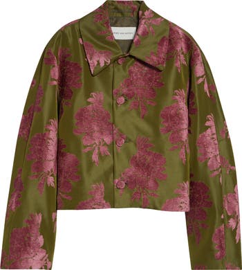 Exquisite bouquets etched in tactile fil coupé speak to the Belgian brand's affinity for all things bold and blooming on this boxy satin jacket refined with fabric-covered buttons.