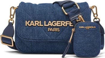 Stay stylish on the go with the washed denim messenger crossbody by KARL LAGERFELD PARIS, offering a perfect blend of functionality and effortless charm for your everyday adventures.