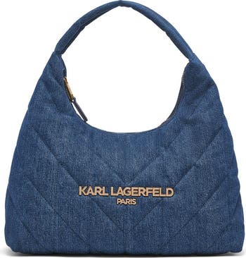 Capture casual charm with the KARL LAGERFELD PARIS washed denim hobo bag, the perfect blend of laid-back style and bohemian flair for your daily outings.