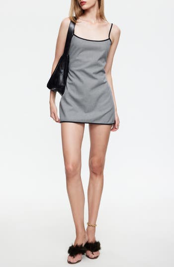 Polished houndstooth checks adds a preppy touch to this flirty little minidress framed by solid trim for a chic finishing touch.