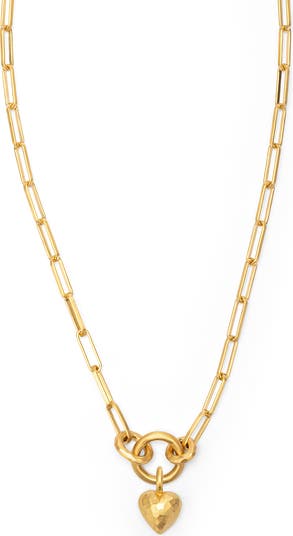 The Voyage Necklace with Clip Chain stands out with its geometric silhouette, joined by oval and round links and a charm holder. Paired with the Heart Charm Large, it becomes a powerful expression of love, courage, and inner strength. Wear it solo or layer with other charms to tell your own story. 100% Handmade in Italy.