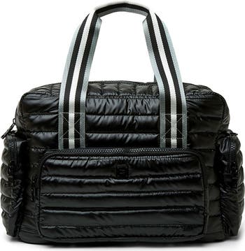 A luggage sleeve that slips over the handles of your suitcase and a ton of pockets make this well-designed bag perfect for stylish frequent travelers. Top handles and an optional, adjustable crossbody strap make it easy to carry just the way you prefer and silvery, reflective lining makes it easier to find what you're looking for inside the bag. A quartet of exterior zip pockets and interior slip and water-bottle pockets help keep you organized, while a flat canvas base helps keep the bag from tipping over when you set it down.