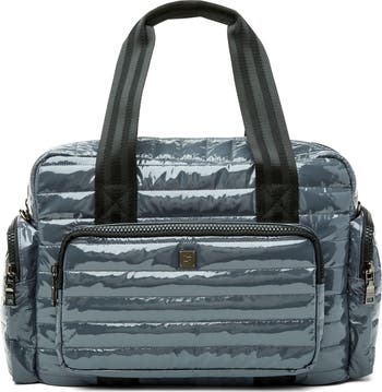A luggage sleeve that slips over the handles of your suitcase and a ton of pockets make this well-designed bag perfect for stylish frequent travelers. Top handles and an optional, adjustable crossbody strap make it easy to carry just the way you prefer and silvery, reflective lining makes it easier to find what you're looking for inside the bag. A quartet of exterior zip pockets and interior slip and water-bottle pockets help keep you organized, while a flat canvas base helps keep the bag from tipping over when you set it down.