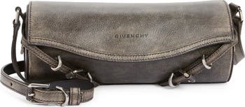 The Voyou collection's hardware-heavy aesthetic defines a compact crossbody bag crafted in a cylindrical silhouette from richly pebbled calfskin leather.