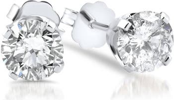 This classic pair of matching women's earrings features two round brilliant cut lab grown diamonds. All diamonds are prong set in solid 14K white gold. 14K White Gold push backs secure these studs. 5/8ct total diamond weight.