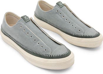 John Varvatos removes the laces from a classic lace-to-toe sneaker clad in cotton and linen to create a slip-on with an iconic profile and a laid-back simplicity. A hand-stitched band of soft suede connects the upper to the lightly distressed rubber cupsole to ground the look with an instant old-favorite feel.