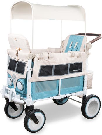 Inspired by the vintage VW bus, this special-edition stroller wagon fulfills your nostalgic memories while providing the perfect two-seater ride for your kids. It includes features like the classic VW bumper, functioning headlights and retro all-terrain XL wheels.