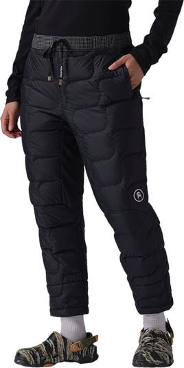 - down-insulated pants ideal for cold days on the mountain and beyond